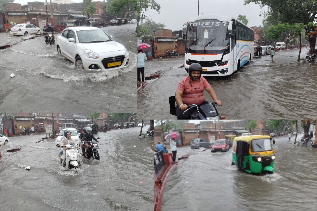 Jaipur Rain :राजधानी जयपुर में आज सुबह से तेज बारिश हो रही है। जिसके कारण लोगों को भारी परेशानी का सामना करना पड़ रहा है। मूसलाधार बारिश ने ड्रेनेज सिस्टम की पोल खोल कर रख दी। शहर में कई स्थानों पर जलभराव हो गया। जिसके कारण निगम व सिविल डिफेंस की टीमों को मौके पर जाना पड़ रहा है। ब्रह्मपुरी थाने के सामने और मानबाग में जलभराव हो गया। जहां पानी की निकासी की जा रही है।