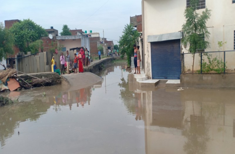 जयपुर। शहर में बुधवार दोपहर से शुरू हुआ बरसात का दौर गुरूवार दोपहर तक चलता रहा। मानसून की बेरुखी से खेतों में मुरझाई फसलें वापस इस बारिश से हरी-भरी हो गई हैं। इसके चलते किसानों के चेहरों पर खुशी की रौनक पसरी है। वहीं जयपुर के कई इलाकों में तेज बारिश ( heavy rain in Rajasthan ) से सड़कें दरिया बन गई। सड़क किनारे दुकानों व थड़ियों में पानी भर गया। इसके चलते वाहन चालकों व राहगीरों को खासी परेशानी का सामना करना पड़ा। ऐसे ही हालात शहर के कई इलाकों में देखने को मिले। घाट की गुणी खानियां में बारिश का बहता पानी लोगों के लिए परेशानी का सबब बन गया। इससे पुलिया के नीचे व दुकानों के पास लोगों ने खड़े होकर बरसात से बचने की कोशिश की लेकिन वाहन चालक भीगने से बच नहीं पाए। बारिश में लोगों को भीगते हुए अपने गंतव्य स्थान तक पहुंचना पड़ा। ऐसे ही नजारे शहर से कई जगह सामने आए हैं।