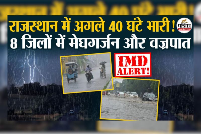 मौसम विभाग ने अगले 40 घंटे यानी 18 और 19 सितंबर के लिए बारिश का येलो अलर्ट जारी करते हुए बांसवाड़ा, बारां, भीलवाड़ा, बूंदी, चित्तौड़गढ़, धौलपुर, डूंगरपुर, झालावाड़, करौली, कोटा, प्रतापगढ़, सलूम्बर और सवाईमाधोपुर में मेघगर्जन और वज्रपात की संभावना जताई है।