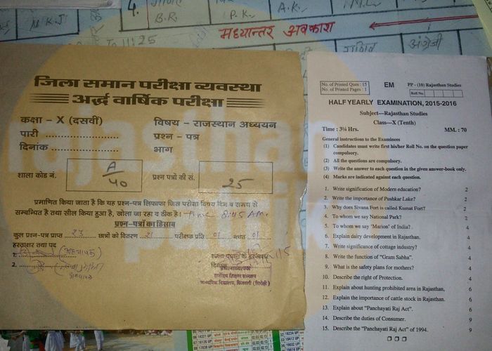 आबूरोड . किवरलीं स्थित एक निजी विद्यालय में अद्र्धवार्षिक परीक्षा दे रहे छात्रों को चौंकने पर मजबूर होना पड़ा जब उन्हें हिन्दी माध्यम से राजस्थान अध्ययन विषय की पढ़ाई करने के बाद परीक्षा के दौरान अंग्रेजी में प्रश्न-पत्र पकड़ा मिला। परीक्षा सबंधित व्यवस्थाओं में इस प्रकार की लापरवाही का खामियाजा छात्रों को भुगतना पड़ा और आधा घण्टे का समय व्यर्थ चला गया। जब छात्रों ने इसकी शिकायत की तो परीक्षकों ने इसकी सूचना संस्था प्रधान भवानी शंकर पुरोहित को दी। उन्होंने परीक्षकों को प्रश्न-पत्र का हिन्दी अनुवाद कर बोर्ड पर लिखने के निर्देश दिए और पास ही स्थित सरकारी विद्यालय से प्रश्न-पत्र लाकर फोटो कॉपी छात्रों को वितरित की। गनीमत रही कि विद्यालय की बिजली आपूर्ति बंद नहीं हुई अन्यथा छात्रों को अंग्रेजी प्रश्न-पत्र में ही परीक्षा देनी पड़ती। कक्षा दसवीं के 21 छात्र परीक्षा देने नियत समय नौ बजे विद्यालय परिसर पहुंच गए। जब उन्हें प्रश्न-पत्र वितरित किए जा रहे थे तो उन्होंने परीक्षक से प्रश्न-पत्र अंग्रेजी में होने की शिकायत की। परीक्षक प्रश्न-पत्र का अनुवाद कर छात्रों को प्रश्न लिखने लगे। इस बीच छात्रों का काफी समय व्यर्थ चला गया। परीक्षा में लापरवाही से छात्रों का करीब आधा घण्टा देर से सही प्रश्न-पत्र मिले। इसमें भी समय कम मिलने से छात्रों के कई प्रश्न छूट गए।