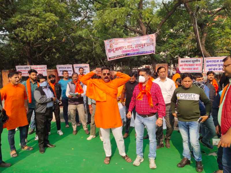 कांग्रेस नेता सलमान खुर्शीद के खिलाफ हिन्दू जागरण मंच का हल्ला बोल