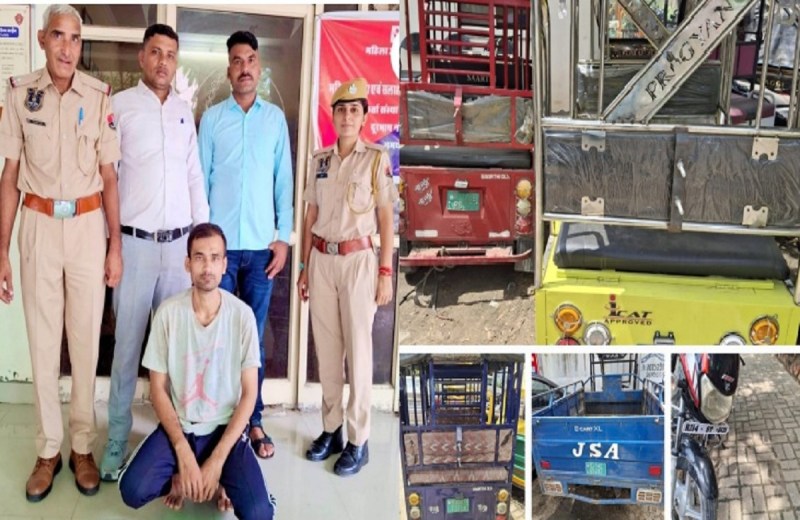 डीसीपी (पूर्व) कावेन्द्र सागर ने बताया कि गिरफ्तार आरोपी शाहरूख उर्फ बकरी तेली पाडा माणक चौक का रहने वाला है। पुलिस ने बताया कि 26 जुलाई को सौरभ भटेजा ने थाने में ई-रिक्शा चोरी की रिपोर्ट दी थी। इस पर एसीपी (आदर्श नगर) लक्ष्मी सुथार और थानाधिकारी सुभाष चंद के नेतृत्व में टीम गठित की गई। टीम ने सीसीटीवी कैमरों की फुटेज चैक करने के बाद 9 अगस्त को खरीददार बिहार निवासी उदय यादव के कब्जे से चुराया हुआ ई-रिक्शा बरामद कर लिया। पुलिस ने पूछताछ की तो उसने बताया कि शाहरूख उर्फ बकरी ने उसे कम कीमत में ई-रिक्शा बेचा था। पुलिस ने आरोपी शाहरूख को गिरफ्तार कर अशोक नगर, मोतीडूंगरी, एसएमएस थाना इलाके से चुराए हुए चार ई-रिक्शा बरामद कर लिए।