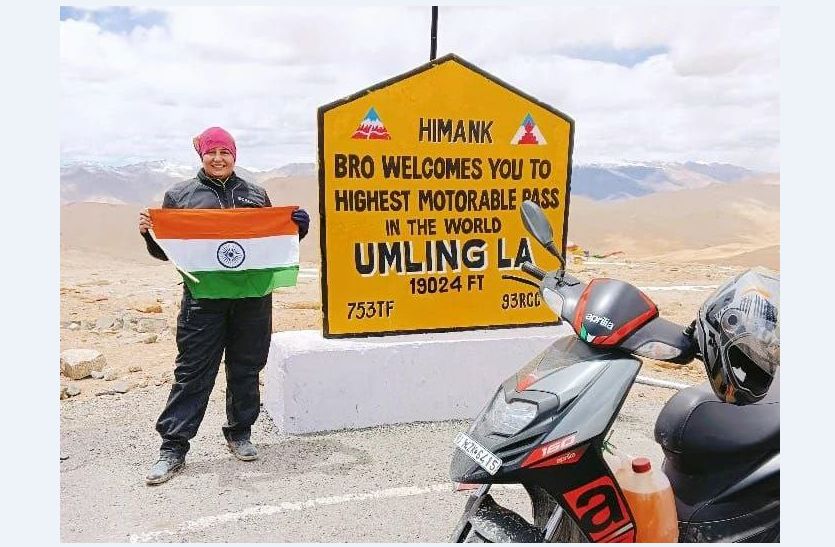जयपुर. शहर की रहने वाली मीनू सिंह ने अपने स्कूटर से दुनिया की सबसे ऊंची सड़क उमलिंग ला(Umling La) की यात्रा कर इतिहास रच दिया है। यह सड़क समुद्र तल से 19 हजार फीट से अधिक की ऊंचाई पर स्थित है। 43 वर्षीय मीनू का सफर बीते 9 जून को शुरू हुआ था, जो 21 जून तक चला।
