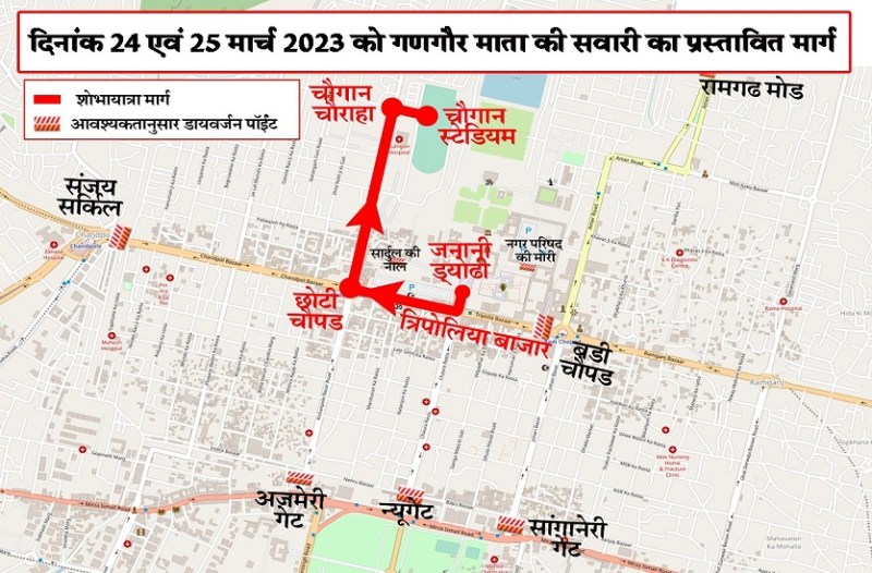 यातायात प्रबंधन 24 और 25 मार्च को गणगौर की सवारी सिटी पैलेस वापस पहुंचने तक जारी रहेगी।