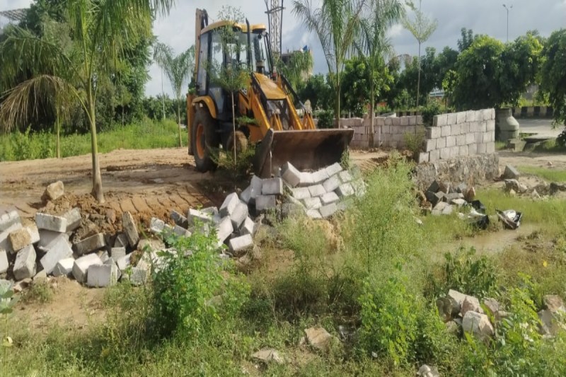 जयपुर। जेडीए की प्रवर्तन शाखा ने बुधवार को पृथ्वीराज नगर-दक्षिण के ग्राम मानपुर देवरी उर्फ गोल्यावास में कार्रवाई की। यहां 104 बीघा भूमि के कुछ हिस्से कोर्ट स्टे के बाद भी अवैध निर्माण किए जा रहे थे। जेडीए ने कार्रवाई के दौरान सभी अवैध निर्माण ध्वस्त कर दिए। उक्त 104 बीघा भूमि पर न्यायालय की ओर से यथास्थिति के आदेश हैं। इसके बाद भी 200 फीट रोड और 80 फीट रोड पर अवैध रूप से निर्माण कार्य किया जा रहे थे। प्रवर्तन शाखा के मुख्य नियंत्रक महेंद्र शर्मा ने बताया कि 200 फीट रोड के पश्चिम दिशा और 80 फीट रोड की पास रातों-रात बड़े पेड़ और बाउंड्री वॉल तक कर ली गई थी। कार्रवाई के दौरान सभी निर्माण ध्वस्त कर जमीन को समतल कर दिया गया है।