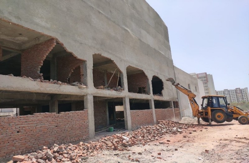 अवैध निर्माण के खिलाफ कार्रवाई करता दस्ता।