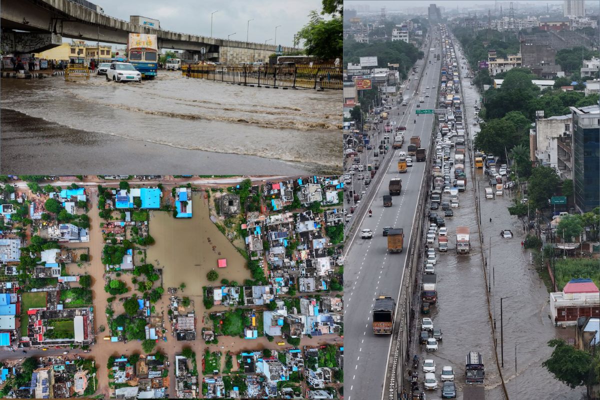 सहकार मार्ग होते हुए लक्ष्मी मंदिर अंडरपास पर जाम मिला। गांधी नगर मोड़ व नगर निगम कार्यालय के सामने यू-टर्न लेते वक्त भी ट्रैफिक फंसा रहा। यूनिवर्सिटी रोड से गांधी सर्कल पहुंचने पर चारों ओर पानी भरा था। ट्रैफिक पुलिसकर्मी खुद वाहन निकालने में लगे रहे।