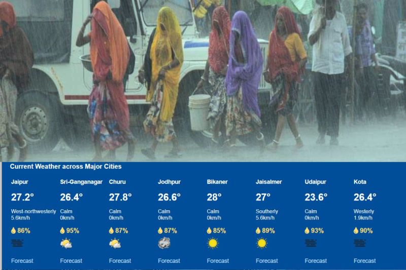 स्काई मेट वेदर रिपोर्ट के अनुसार, राजस्थान के अलावा सौराष्ट्र और कच्छ, पश्चिम बंगाल, ओडिशा के कुछ हिस्सों, झारखंड, तमिलनाडु और केरल में हल्की से मध्यम बारिश के साथ कुछ स्थानों पर भारी बारिश हो सकती है।
