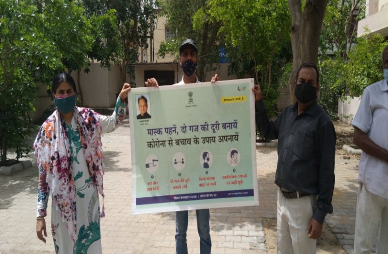 Jaipur जिला प्रशासन की ओर से चलाए जा रहे डोर टू डोर सर्वे और जन जागरूकता कार्यक्रम में बुधवार को जयपुर नगर निगम क्षेत्र में कलस्टर प्रभारियों, एंटी कोविड टीमों की ओर से रंगोली और पोस्टर से टीकाकरण के महत्व का प्रचार प्रसार किया गया। सांगानेर शहर के परिक्षेत्र में विभिन्न चौराहों पर तख्ती, पोस्टर एवं रंगोली बनाकर लोगों को कोविड-19 से बचाव एवं 18 वर्ष से अधिक आयु के लोगों को टीकाकरण हेतु प्रेरित किया गया। नोडल के अधीन क्लस्टर विद्यालय राजकीय बालिका माध्यमिक विद्यालय शिकारपुरा, राजकीय उच्च माध्यमिक विद्यालय भांकरोटा, राजकीय उच्च प्राथमिक विद्यालय हज्तावाला, राजकीय उच्च माध्यमिक विद्यालय सिंधी सांगानेर के द्वारा शिक्षकों की टीमें बनाकर विभिन्न चौराहों पर कोरोना जन जागरूकता अभियान चलाया गया। एसीटी टीमों की ओर से कोरोना जन जागरूकता कार्यक्रम के अंतर्गत घर-घर जाकर सर्वे कार्य किया। वहीं घरों के लोगों को बाहर ना निकलने, अनिवार्य रूप से मास्क लगाकर ही बाहर जाने, सामाजिक दूरी का पालन करने और सैनिटाइजर का उपयोग करने, नो मास्क नो एंट्री की पालना करने के लिए समझाइश की गई।