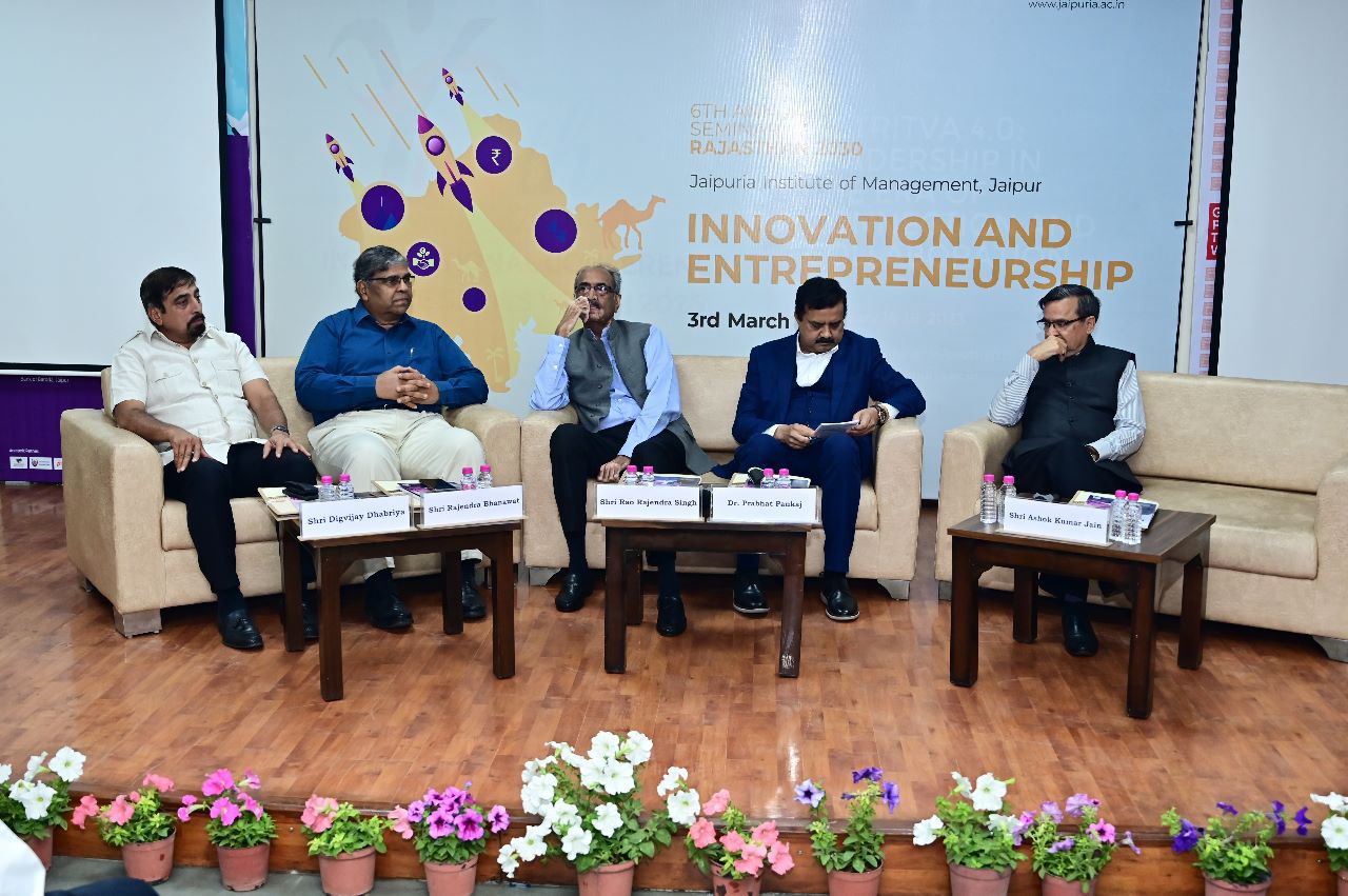 जयपुर.नवाचार और उद्यमिता राजस्थान के विकास को आगे बढ़ाएगी। यह उद्बोधन राजस्थान विधानसभा के पूर्व डिप्टी स्पीकर राव राजेंद्र सिंह ने प्रताप नगर स्थित जयपुरिया इंस्टीट्यूट ऑफ मैनेजमेंट में पीएचडीसीसीआई के सहयोग से नवाचार और उद्यमिता विषय पर राजस्थान 2030 श्रंखला कार्यक्रम के तहत दिए। दिग्विजय ढबरिया( अध्यक्ष पीएचडीसीसीआई, राजस्थान ) ने राष्ट्रीय विकास में राजस्थान के उद्यमियों के महत्वपूर्ण योगदान पर प्रकाश डाला। विशिष्ट अतिथि पूर्व मुख्य सचिव अशोक कुमार जैन एवं रीको के पूर्व प्रबंध निदेशक राजेन्द्र भणावत थे।