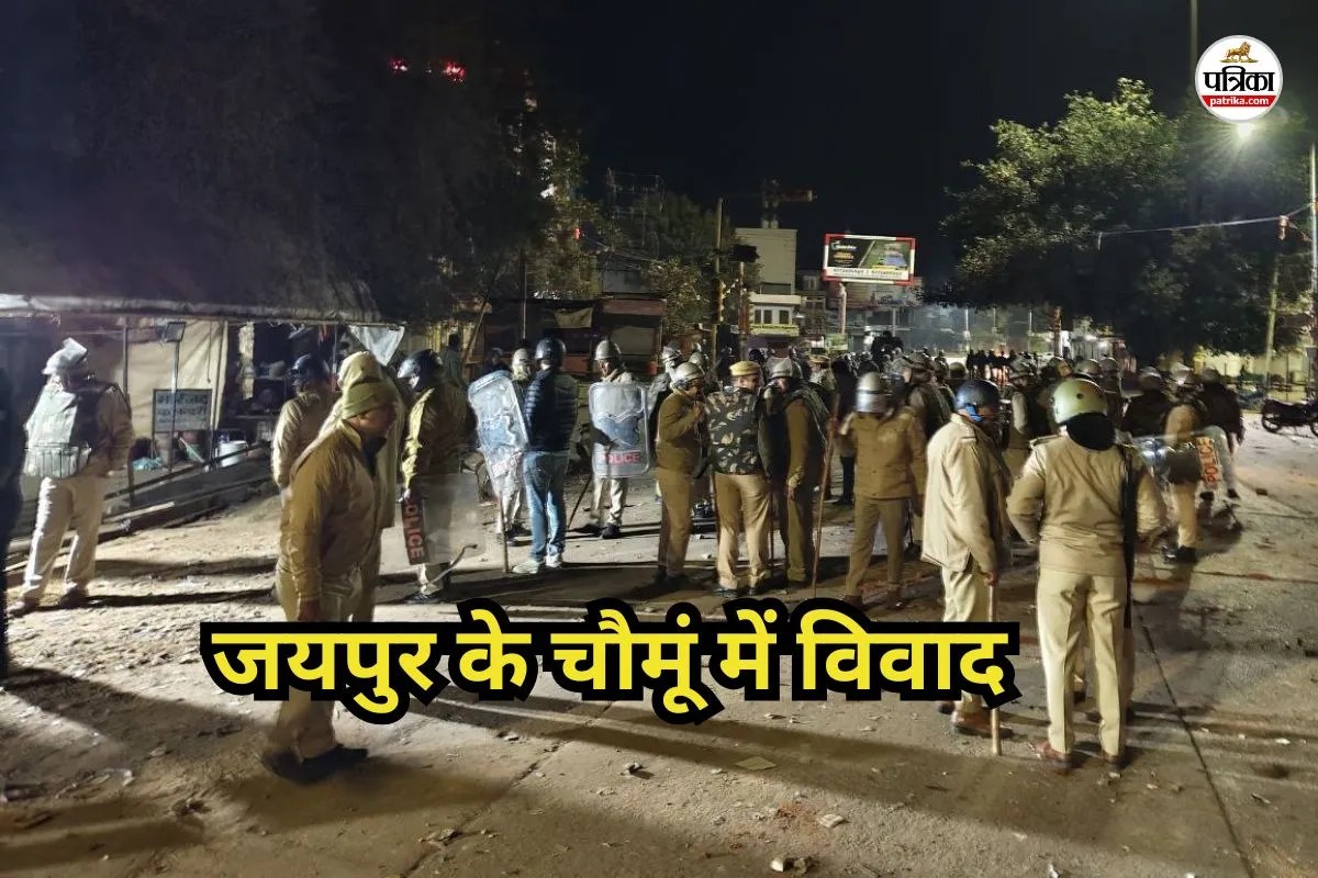 चौमूं में विवाद के बाद मौके पर मौजूद पुलिस। फोटो: पत्रिका