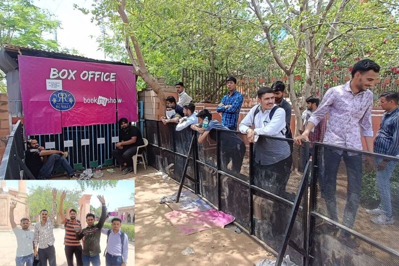 शाम 7 बजे टोंक रोड पर खुलने वाले गेट पर दर्शकों की लंबी कतार लगी हुई। वहीं नगर निगम के गेट के समीप बनी यातायात पुलिस की गुमटी के पास एजेंट टिकट व कॉम्प्लीमेंट्री पास की कालाबाजारी कर रहे थे।