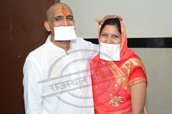जयपुर / सूरत. घोडदौड़ रोड स्थित वृंदावन पार्क में सिर्फ सुमित राठौड़ ने आचार्य रामलालजी के सानिध्य में जैन भगवती दीक्षा ग्रहण की। जबकि कानूनी प्रावधानों के चलते उनकी पत्नी अनामिका राठौड़ ने फिलहाल दीक्षा नहीं ली। सुबह सुमित की दीक्षा कार्यक्रम में मौजूद अनामिका के चेहरे पर मायूसी नजर आई। वह भी पति के साथ सांसारिक जीवन का त्याग करना चाहती थी लेकिन ऐसा नहीं हो पाया। कार्यक्रम स्थल पर एक महिला समेत दो पुलिसकर्मियों को तैनात किया गया था। सुबह दीक्षा कार्यक्रम में पुलिस एस्कॉर्ट के साथ छत्तीसगढ़ के संसदीय सचिव लाभचंद बाफना भी पहुंचे।