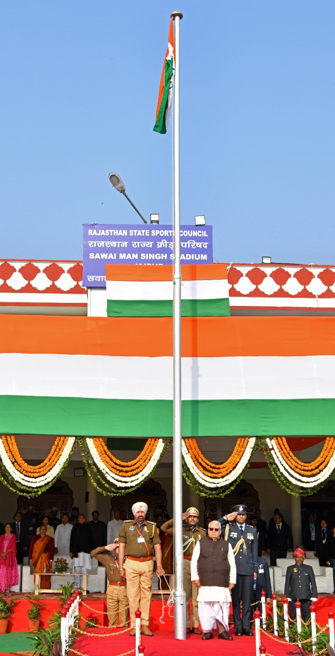 74वां गणतंत्र दिवस गुरुवार को राज्यपाल कलराज मिश्र की अध्यक्षता में एसएमएस स्टेडियम में मनाया गया। राज्यपाल मिश्र ने ध्वज फहराया और परेड की सलामी ली। इस अवसर पर मुख्यमंत्री अशोक गहलोत,विधानसभा अध्यक्ष सीपी जोशी व अन्य गणमाण्य व्यक्ति मौजूद थे।