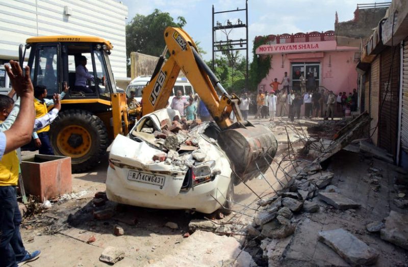 जयपुर। जोरावरसिंह गेट के बाहर मंगलवार दोपहर छज्जा और करीबन 25 फीट लंबी दीवार गिर गई। जिसके नीचे एक कार और दो मोटर साइकिल पूरी तरह से क्षतिग्रस्त हो गई। पार्किंग की जगह और उस वक्त गाड़ी में कोई नहीं होने से किसी को कोई चोट नहीं आई है।