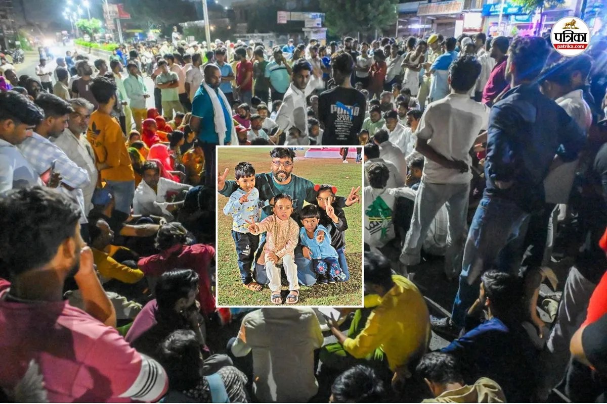 जयपुर के आमेर थाना क्षेत्र दर्दनाक हादसा, मृतक ओमप्रकाश का बच्चों के साथ फाइल फोटो (इनसेट)। पत्रिका फोटो