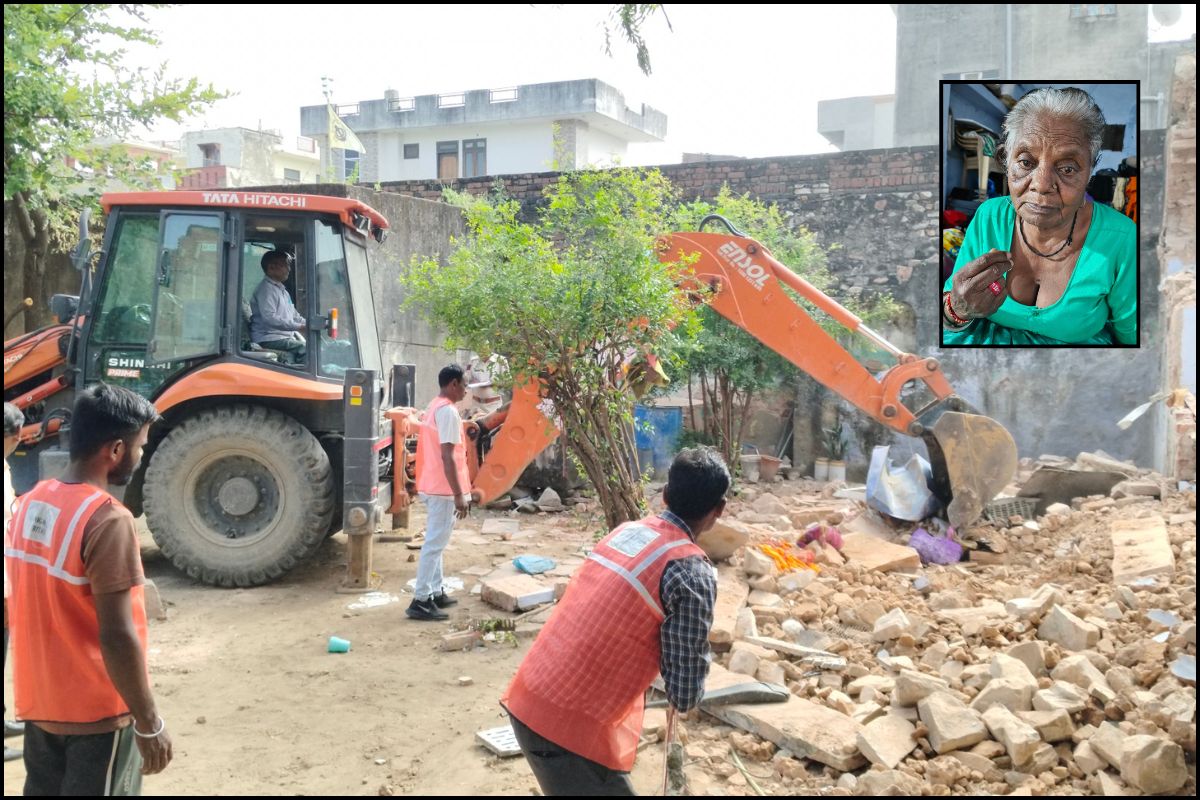 मकान के मलबे को हटाते कर्मचारी, मृतक महिला धन्नी देवी