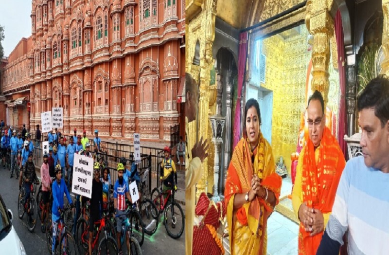 जयपुर स्थापना दिवस पर साइकिल से मतदान का संदेश, महापौर सौम्या ने की पूजा-अर्चना