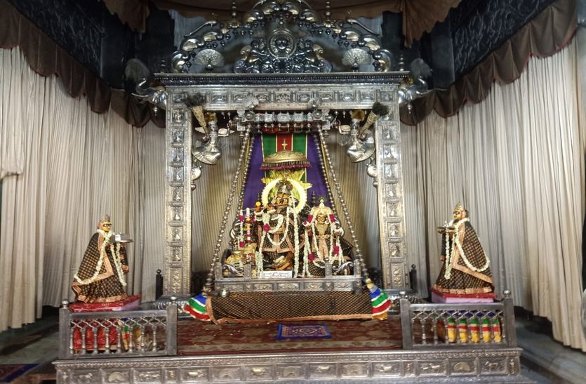 शहर के आराध्य गोविंददेवजी मंदिर (Govinddev Temple Jaipur) में तीन दिवसीय विशेष झूला महोत्सव (Jhula Festival) शुरू होगा। सिंजारे से ही ठाकुरजी को झूला झूलाया जाएगा। ठाकुरजी को लहरिया और जामा पोशाक धारण करवाई जाएगी। मंदिर प्रवक्ता मानस गोस्वामी ने बताया कि सिंजारे पर ठाकुरजी को लाल रंग की लहरिया और जामा पोशाक धारण करवाई जाएगी। ठाकुरजी को झूला झूलाया जाएगा। ठाकुरजी को घेवर का भोग लगाया जाएगा। तीन दिवसीय झूला महोत्सव के तहत बूढ़ी तीज तक ठाकुरजी को झूला झूलाया जाएगा। इसके बाद 18 अगस्त को एकादशी पर फिर से ठाकुरजी को झूला झूलाया जाएगा, जो पूर्णिमा पर रक्षाबंधन तक नियमित ठाकुरजी को झूला झूलाया जाएगा। इस बीच ठाकुरजी को राजभोग झांकी में रोजाना लड्डुओं का भोग लगाया जाएगा।