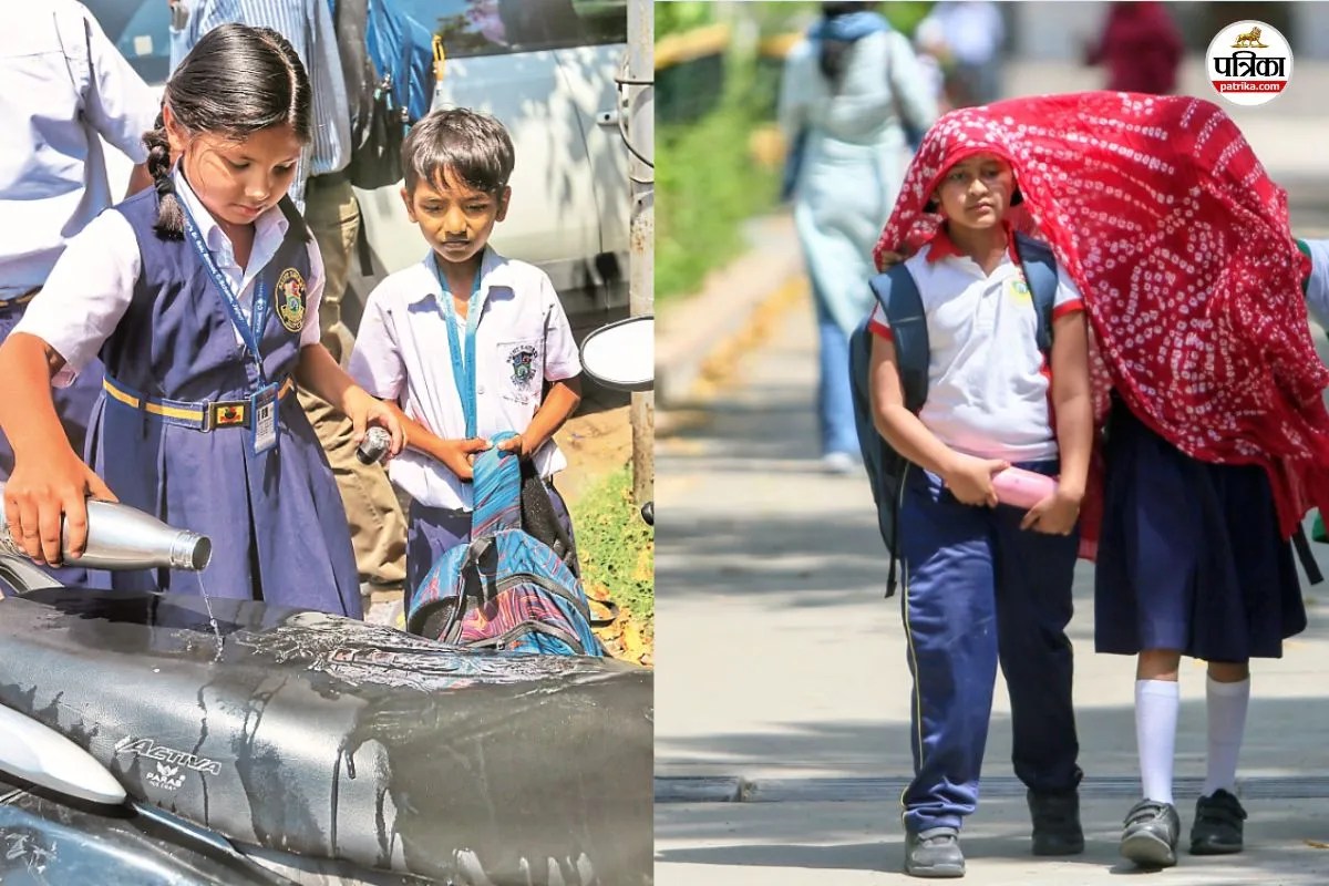 गर्मी से बचने का जतन करते स्कूली बच्चे, पत्रिका फोटो