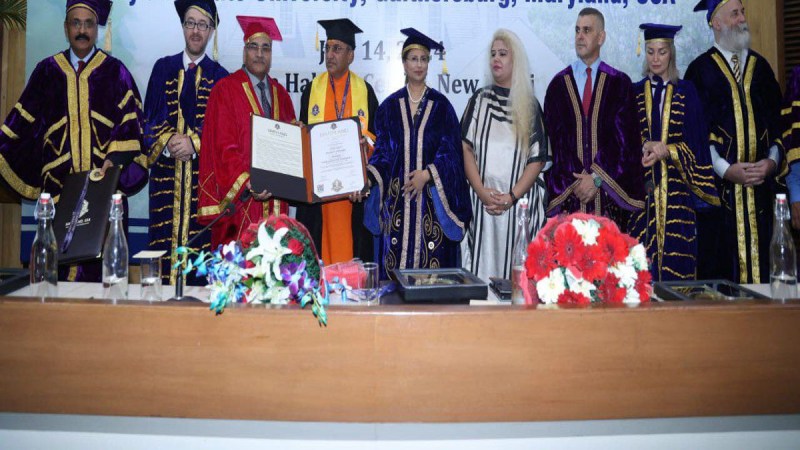 दिल्ली में आयोजित समारोह में कुलाधिपति, मेवाड़ विश्वविद्यालय डॉ. अशोक कुमार गडिय़ा, डॉ. एस. आदिनारायण, पीएचडी, निर्णायक मंडल, डॉक्टरल निगरानी बोर्ड मैरीलैंड स्टेट यूनिवर्सिटी,डॉ. विक गैफऩी निदेशक (एशिया/प्रशांत) कावेती लॉ फ़र्म, ऑस्ट्रेलिया और सीनेटर, मैरीलैंड स्टेट यूनिवर्सिटी, प्रदीप खत्री, एचपीएस उप अधीक्षक पुलिस (डीएसपी), हरियाणा, एडवोकेट नवनीत मोमी बौद्धिक संपदा कानून विशेषज्ञ एलएलएम, यूनिवर्सिटी ऑफ़ मैनचेस्टर, इंग्लैंड, चाल्र्स थॉमसन वरिष्ठ पत्रकार, सिडनी ऑस्ट्रेलिया और सदस्य, डॉक्टरल मॉनिटरिंग बोर्ड मैरीलैंड स्टेट यूनिवर्सिटी , डॉ. एवगेनिया झारिकोवा प्रोफेसर और अंतर्राष्ट्रीय शिक्षाविद ओडेसा, यूक्रेन और सदस्य, डॉक्टरल मॉनिटरिंग बोर्ड द्वारा सम्मानित किया गया।