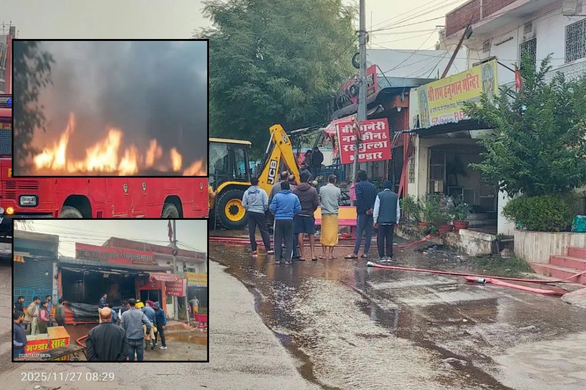 Jaipur News: राजधानी जयपुर के सोडाला क्षेत्र में अजमेर रोड, पुरानी चुंगी के पास स्थित बीकानेरी रसगुल्ला, नमकीन भंडार में गुरुवार सवेरे भीषण आग लग गई। दुकान से शुरू हुई यह आग इतनी विकराल थी कि इसने पास ही स्थित एक मैरिज गार्डन को भी अपनी चपेट में ले लिया, जिससे दोनों जगहों पर भारी नुकसान हुआ है।