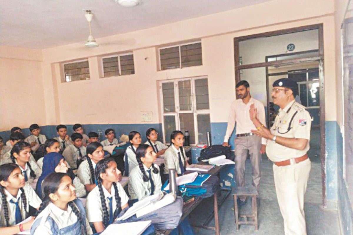 स्कूली बच्चों को समझाते हुए आरपीएफ अधिकारी (फोटो: पत्रिका)