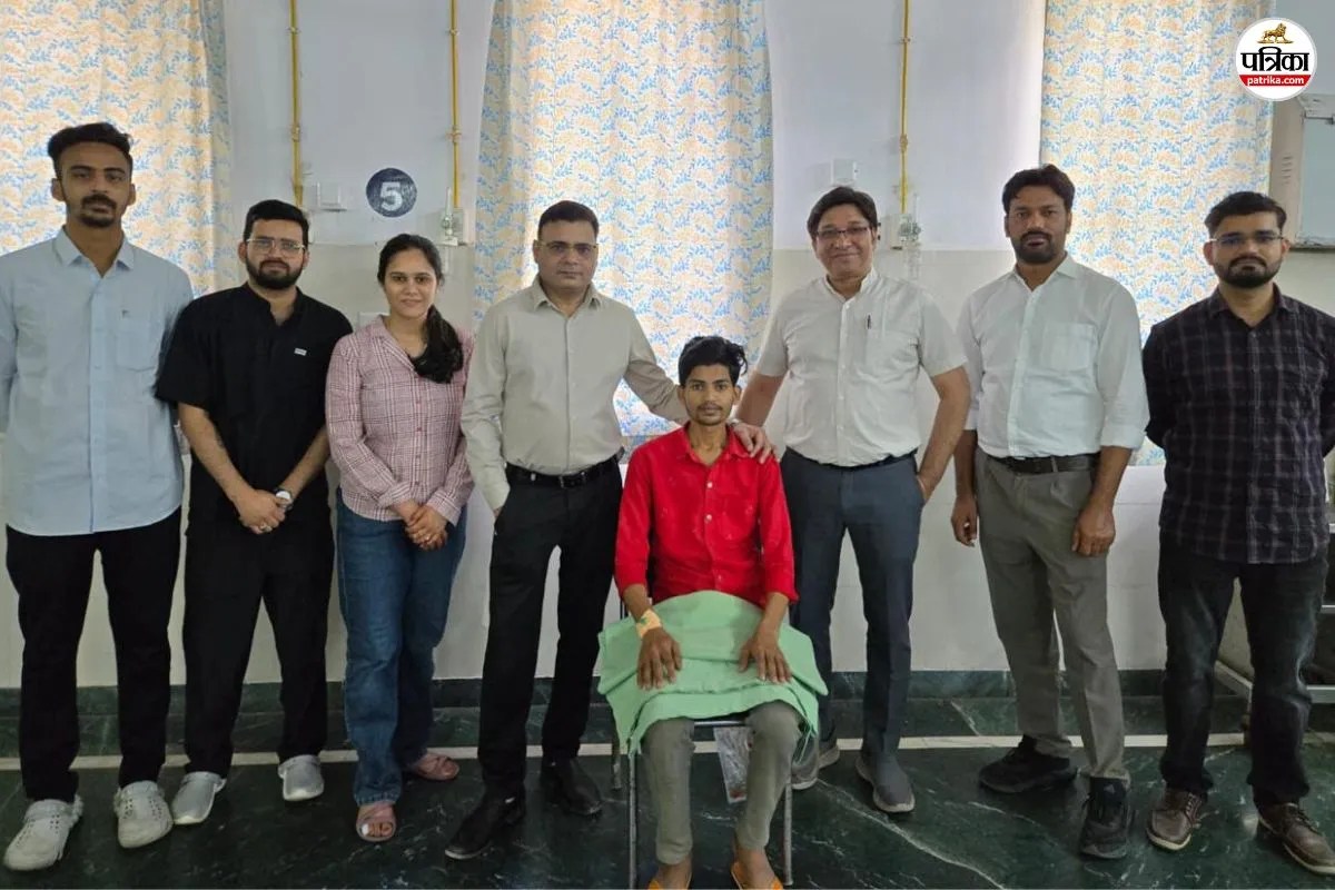 सफल सर्जरी के बाद चिकित्सकों की टीम और मरीज (फोटो-पत्रिका)