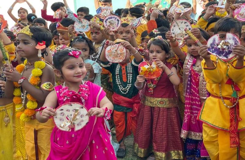 जन्माष्टमी पर बच्चों ने बनाई कान्हा की पोशाकें, भरे रंग