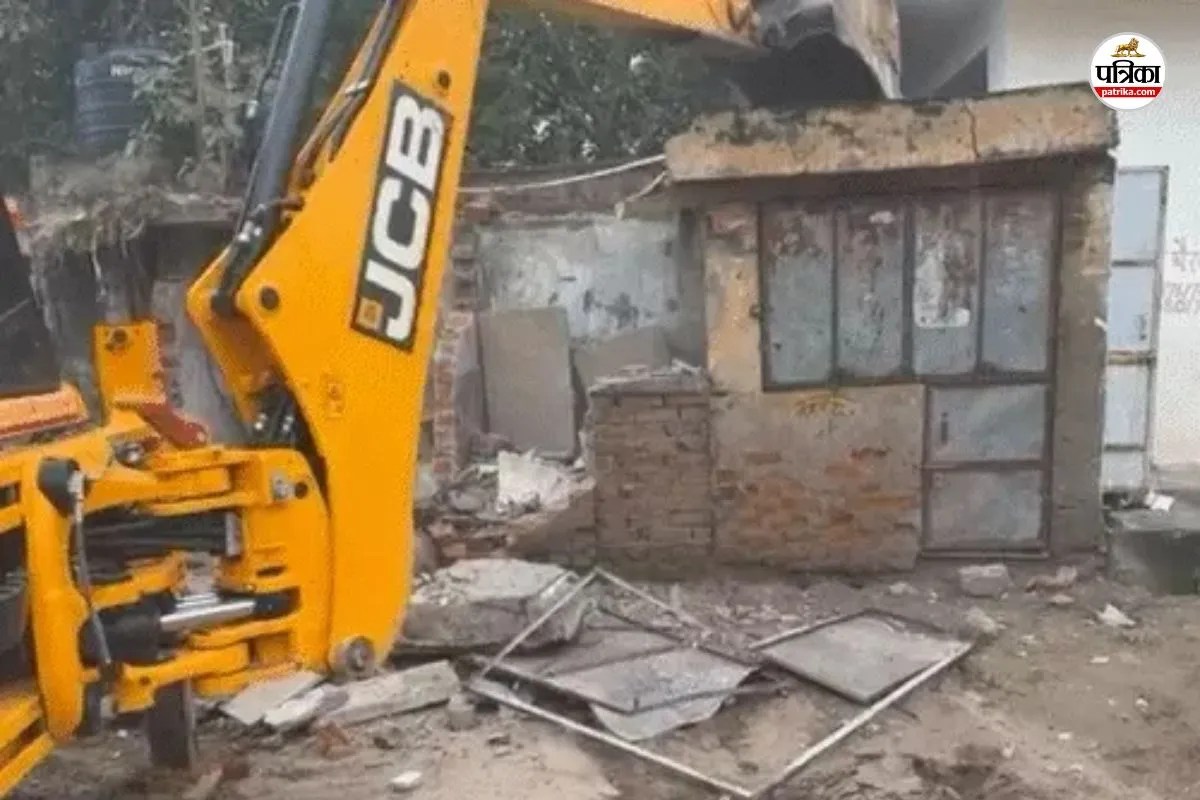 बुलडोजर से अतिक्रमण हटाते हुए। फोटो: पत्रिका