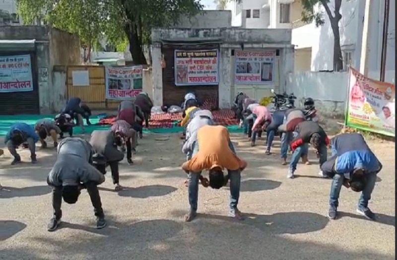 मुर्गा बनकर अभ्यार्थियों ने उठाई अपनी आवाज