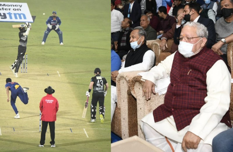 सवाई मानसिंह स्टेडियम पर बुधवार को खेले गए भारत बनाम न्यूज़ीलैंड टी-ट्वेंटी मैच के दौरान राज्यपाल कलराज मिश्र और मुख्यमंत्री अशोक गहलोत की क्रिकेट दीवानगी चर्चा का विषय रही। दरअसल, दोनों ने साथ बैठकर इस मैच के आखिर तक के रोमांच को देखा। राज्यपाल और मुख्यमंत्री की ख़ुशी मैच में भारत की जीत पर भी नज़र आई जब दोनों ने टीम इंडिया के साथ ही तमाम दर्शकों और क्रिकेट फैंस को बधाई दी।