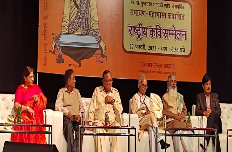 जयपुर। आजादी के अमृत महोत्सव केतहत राजस्थान संस्कृत अकादमी और कला एवं संस्कृति विभाग की ओर से आयोजित किए जा रहे एक महीने के माघ महोत्सव के तहत रविवार को रामायण महाभारत के पात्रों पर आधारित कवि सम्मेलन का आयोजन किया गया। केंद्र के रंगायन ऑडिटोरियम में आयोजित इस अनूठे कवि सम्मेलन हमें हिंदी, राजस्थानी और संस्कृत भाषाओं के दस कवियों ने रचना पाठ किया। इन कवियों की रचनाओं में कभी दुर्योधन के दुस्साहस से उपजी व्यथा नजर आई, कभी पति के वियोग में अयोध्या में चौदह साल बिताने वाली लक्ष्मण की पत्नी उर्मिला की मनोदशा का चित्रण हुआ तो कभी युद्ध से विचलित युधिष्ठिर के मनोभावों ने वहां मौजूद लोगों की आंखों के सामने ये दृश्य जीवंत कर दिए। ये कवि सम्मेलन माघ और राष्ट्रपति पुरस्कार से सम्मानित संस्कृत विद्वान डॉ. पुष्कर दत्त शर्मा को समर्पित किया। कवि सम्मेलन से पूर्व जयपुर के संस्कृत मनीषी प्रोफेसर तारा शंकर पांडेय को डॉ. पुष्कर दत्त शर्मा प्रज्ञा अलंकरण से सम्मानित किया गया। कला और संस्कृति मंत्री बीडी कल्ला समारोह के मुख्य अतिथि थे जबकि केन्द्रीय संस्कृत विश्व विद्यालय, नई दिल्ली के पूर्व कुलपति प्रो. राधा वल्लभ त्रिपाठी ने अध्यक्षता की।