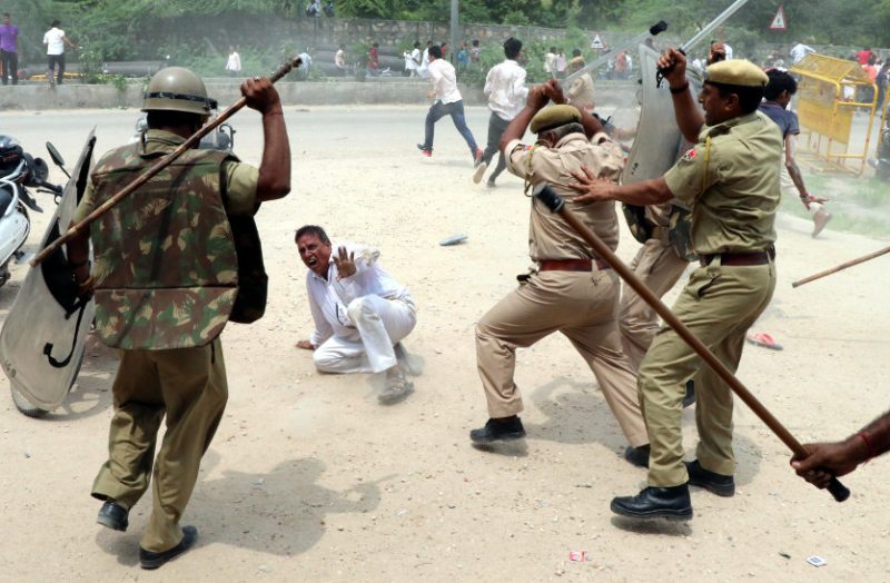 भाजपा के पूर्व विधायक कैलाश वर्मा और कन्हैयालाल मीणा भी थाने पर पहुंच गए और प्रर्दशन करने लगे। प्रर्दशनकारी पुलिस पर निष्पक्ष कार्रवाई नहीं करने का आरोप लगा थाना परिसर में धरना देने के लिए टैंट लगाने लगे। पुलिस ने प्रर्दशनकारियों को टैंट नहीं लगाने के लिए टोका तो भीड़ में पीछे से किसी ने पत्थर फेंक दिए। इस पर पुलिस ने लाठी चार्ज कर भीड़ को खदेड़ दिया। लाठी चार्ज के दौरान थाने पर रिपोर्ट दर्ज कराने पहुंचे मृतक की पत्नी सहित अन्य परिजनों को भी पीटा गया। दोनों पूर्व विधायकों से बदसलूकी की गई। पूर्व विधायक कैलाश वर्मा को बेहोशी की हालत में एसएमएस अस्पताल में भर्ती कराया गया। इसकी जानकारी लगने पर भाजपा के सांसद रामचरण बोहरा, राज्यसभा सांसद किरोड़ीलाल मीणा, विधायक रामलाल शर्मा, अशोक लाहोटी, पूर्व विधायक अशोक परनामी, सुरेन्द्र पारीक, अरूण चतुर्वेदी सहित सैकड़ों की संख्या में कार्यकर्ता थाने पर पहुंच गए।