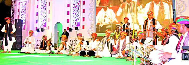 रात सवा दस बजे बाड़मेर के मांगणियार लोककला मंडल के कलाकारों ने परम्परागत वेशभूषा में सज-संवरकर ढोलक, कमाइचा, करताल, सारंगी, बीन, अलगोजा, मुरली, मोरचंग, भपंग आदि वाद्य यंत्रों पर संगत करते हुए लोकगीत सुनाए तो श्रोता मंत्रमुग्ध हो गए। इसके बाद करीब डेढ़ घंटे तक लगातार एक के बाद एक केसरिया बालम आवो नी पधारो म्हारे देस..., लड़ली लूमा झूमा, म्हारो गोरबंद नखराळो..., कृष्ण भक्ति पर आधारित श्री राधारानी दे द्यो बांसुरी मोरी, नींबूड़ा-नींबूड़ा..., दमादम मस्त कलंदर... सरीखे लोक गीतों व भजनों की प्रस्तुतियां दी।