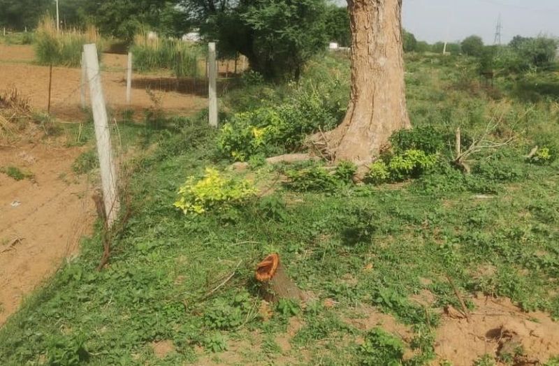 भूमाफियाओं ने मोक्षधाम में पेड़ों पर चलाई कुल्हाड़ी