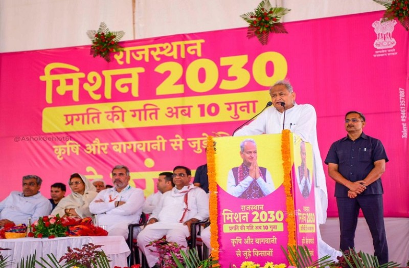गहलोत बुधवार को चौमूं के खेल स्टेडियम में राजस्थान मिशन-2030 के तहत कृषि एवं बागवानी से जुड़े किसानों से संवाद कार्यक्रम को सम्बोधित कर रहे थे। उन्होंने किसानों और पशुपालकों से आह्वान किया कि वे राज्य सरकार की जनकल्याणकारी योजनाओं का अधिक से अधिक लाभ उठाएं।