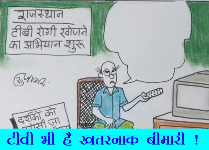 कोरोना महामारी के बीच राजस्थान में टीबी रोग की रोकथाम के लिए एक विशेष अभियान चलाया जा रहा है .स्वास्थ्य विभाग ने इसका पहला चरण शनिवार से शुरू कर दिया है जो 16 अक्टूबर तक चलेगा. इस अभियान को टीबी रोगी खोज अभियान नाम दिया गया है.अभियान के सर्वे के दौरान जिस व्यक्ति में दो सप्ताह से अधिक खांसी, बुखार, भूख कम लगना, लगातार वजन में गिरावट, बलगम में खून आदि लक्षण मिलेंगे उन्हें संभावित टीबी रोगी मानते हुए चिह्नित किया जाएगा और सरकारी अस्पताल में उसका मुफ्त इलाज किया जाएगा. टीवी तो खतरनाक बीमारी है ही मगर आजकल टीवी यानी टेलीविजन गंभीर बीमारी बन गया है.निजी टीवी चैनलों पर लगातार हिंसा और अश्लीलता से भरे कार्यक्रम दिखाए जा रहे हैं. घर को चाहिए कि वह ऐसे कार्यक्रमों पर लगाम लगाए ताकि युवा पीढ़ी को गुमराह और विकृत होने से बचाया जा सके.देखिये इस मुद्दे पर कार्टूनिस्ट सुधाकर का ये कार्टून