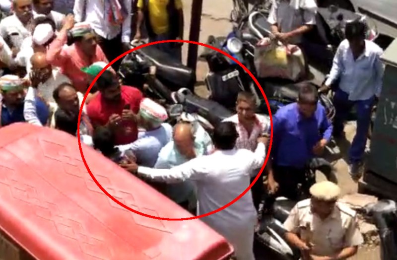 जयपुर। लोकसभा चुनाव ( Loksabha Election 2019 ) प्रचार के अंतिम दिन शनिवार को कांग्रेस ( Congress ) का जयपुर शहर में मेगा रोड शो Road Show in Jaipur का आयोजन हुआ। सुबह प्रदेश कांग्रेस कार्यालय पर कांग्रेस नेता एकत्रित हुए। इसके बाद पीसीसी से रोड शो रवाना हुआ। इस दौरान छोटी चौपड़ के पास दीनानाथ जी की गली के पास कुछ स्थानियों लोगों ने 'मोदी—मोदी' के नारे लगाने शुरु कर दिए। इस पर कांग्रेस कार्यकर्ता भड़क गए और वो भी 'चौकीदार चोर है' के नारे लगाने लगे। इस दौरान में दोनों पक्षों में झड़प व हाथापाई शुरु हो गई। मामला बिगड़ा देख कांग्रेस के कुछ कार्यकर्ताओं ने समझा बुझाकर मामला शांत किया।