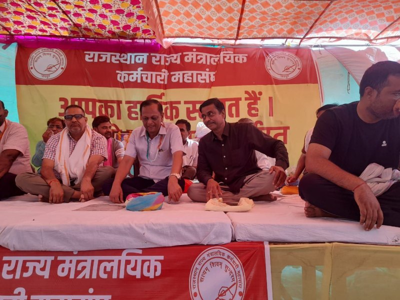 जयपुर. मंत्रालयिक एकता मंच की ओर से शहीद स्मारक पर क्रमिक अनशन 77 दिन से जारी है। प्रवक्ता देवेन्द्र सिंह नरूका ने कहा कि कॉलेज शिक्षा विभाग के मंत्रालयिक कर्मचारी विभागीय अध्यक्ष राहुल यादव के नेतृत्व में बुधवार को सचिन बागड़ा, संतोष शर्मा, कुलदीप सिंह, वसुदेव मीणा, अजय शर्मा अनशन पर बैठे।