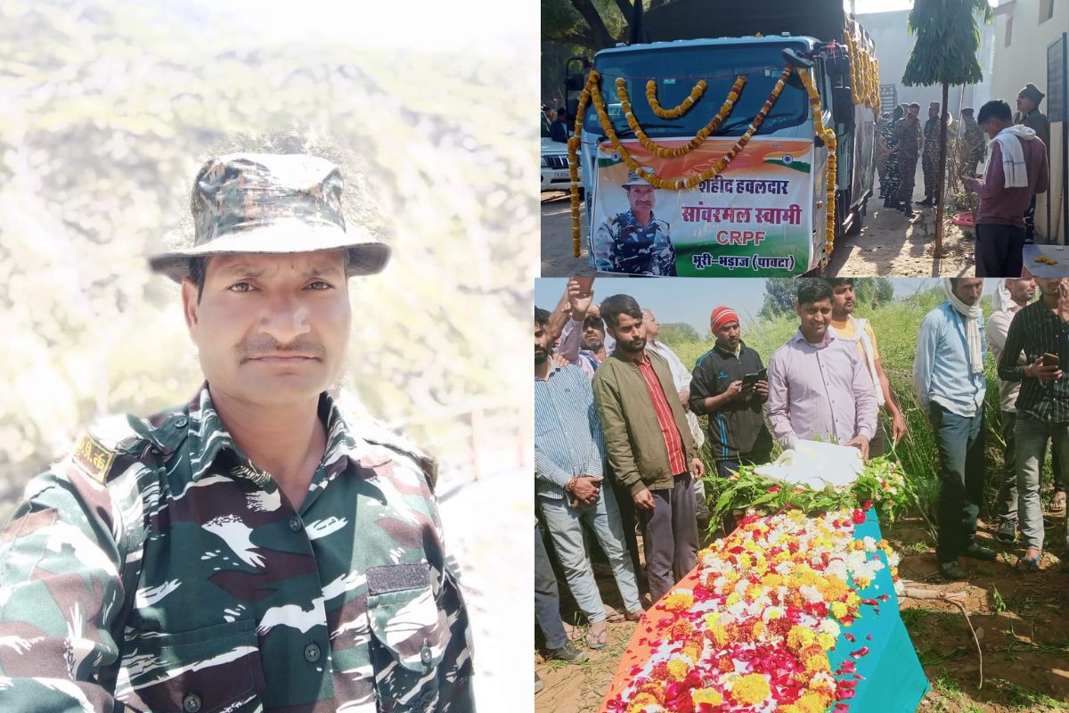 वहां पुष्प अर्पित कर श्रद्धांजलि अर्पित की गई। उसके बाद सेना के वाहन में देह को रैली के रूप में पैतृक गांव भूरी भडाज ले जाया गया। रास्ते में जगह-जगह गांवों व ढाणियों में लोगों ने देह पर पुष्प वर्षा की। प्रागपुरा थाने से करीब 3.5 किलोमीटर दूर जब हवलदार की देह उनके पैतृक गांव भूरी भडाज घर पहुंची तो माहौल गमगीन हो गया। मृतक की पत्नी, बच्चे व भाई-बहनों एवं अन्य परिजनों की रो-रो कर हालत खराब थी। हवलदार के 10 वर्ष के पुत्र आदित्य ने मुखाग्नि दी। इस दौरान सेना से आये अधिकारियों ने पुष्प चक्र चढ़ाकर श्रद्धांजलि दी एवं सीआरपीएफ बटालियन सेना की टुकड़ी ने अंतिम गार्ड ऑफ ऑनर दिया।