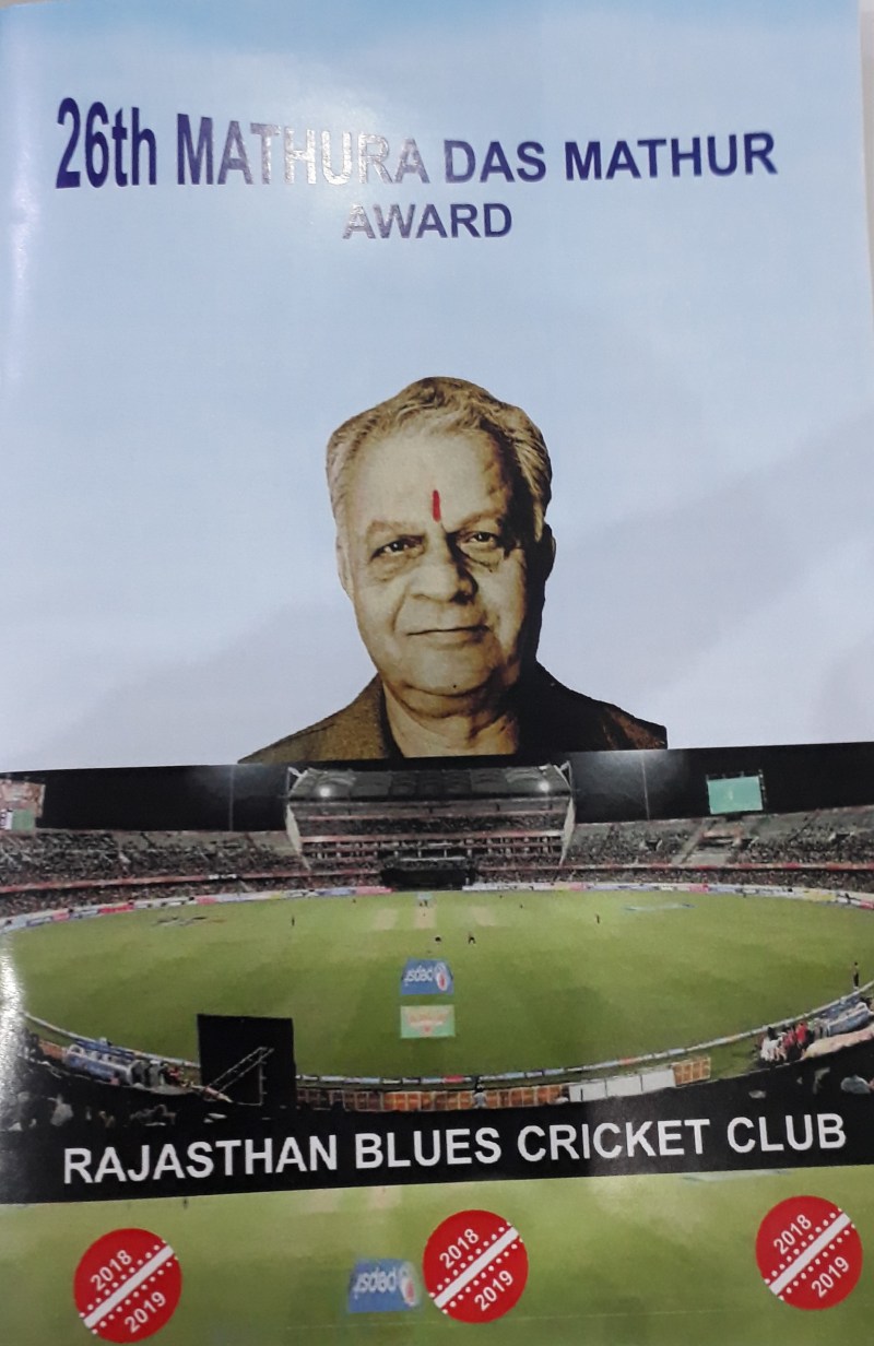 मथुरादास माथुर अवॉर्ड के 26वें वर्ष के उपलक्ष में इस वर्ष मुख्य अवॉर्ड के अलावा राज्य के राहुल चाहर को Indian Cricket Team T-20 टीम में चयन होने व आकाश सिंह को Under-19 में भारतीय टीम में प्रतिनिधित्व करने पर सम्मानित किया जाएगा। समारोह के मुख्य अतिथि खेल मंत्री अशोक चांदना, अध्यक्ष मुख्य सचेतक डॉ. महेश जोशी, विशिष्ट अतिथि क्रिकेट प्रशासक अमृत माथुर और पूर्व अंतरराष्ट्रीय खिलाडी व भारतीय सीनियर चयन समिति सदस्य गगन खोड़ा होंगे।