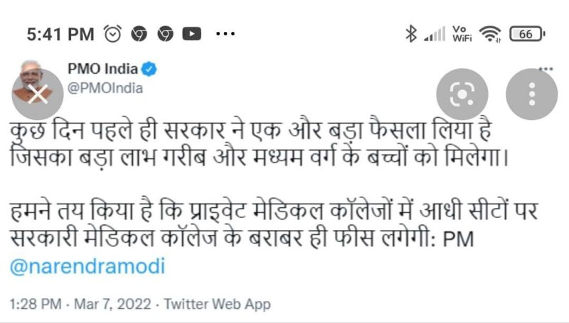 नेशनल मेडिकल कमीशन (एनएमसी) की ओर से जारी गाइडलाइन के मुताबिक निजी मेडिकल कॉलेजों में 50 प्रतिशत सीटों पर सरकारी मेडिकल कॉलेजों के बराबर शुल्क होगा। 15 प्रतिशत मैनजमेंट या एनआरआई सीटों के बाद शेष 85 प्रतिशत सीटों में से 42.5 प्रतिशत सीटों पर यह नियम लागू होगा।
