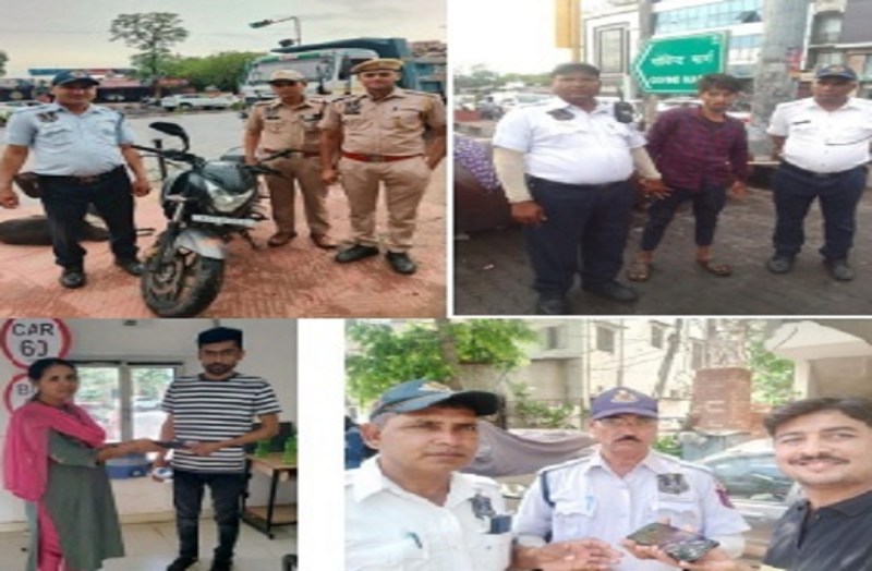 गर्वमेंट प्रेस चौराहा- गर्वमेन्ट प्रेस चौराहे पर यातायात संचालन के लिए हैड कांस्टेबल सुशील कुमार, मुरारीलाल और होमकार्ड जाकिर की ड्यूटी लगी हुई थी। इसी दौरान सड़क पर लावारिस मोबाइल पर नजर पड़ी। हैड कांस्टेबल सुशील कुमार ने मोबाइल कब्जे में लेकर मोबाइल मालिक को लौटा दिया। डीसीपी यातायात प्रहलाद कृष्णियां ने सराहनीय कार्य के लिए जाप्ते को शाबासी दी और उन्हें रिवार्ड रोल देने का निर्णय लिया हैं।