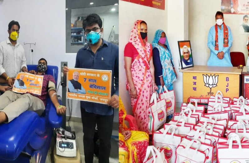 मोदी सरकार के दो कार्यकाल के सात वर्ष पूरे होने के उपलक्ष्य में प्रदेश भाजपा की ओर से आज विभिन्न आयोजन किये जा रहे हैं। 'सात साल बेमिसाल' नाम से आयोजित हो रहे कार्यक्रमों के तहत कहीं रक्तदान शिविर तो कहीं ज़रूरतमंदों को भोजन या अन्य राहत सामग्री का वितरण किया जा रहा है। भाजपा नेताओं और कार्यकर्ताओं पर मोदी सरकार के सफलतम सात वर्ष पूरे होने के मौके पर उत्साह देखा जा रहा है।