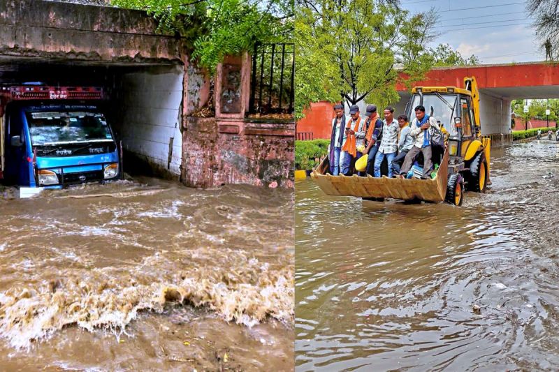 बारिश के बाद सड़कें जलमग्न (फोटो: पत्रिका)
