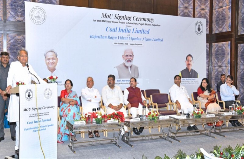 जयपुर। सौर ऊर्जा के क्षेत्र में राजस्थान अब सिरमौर बनने जा रहा है, प्रदेश में 1190 मेगावाट क्षमता की सोलर परियोजनाके लिए गुरूवार को राजस्थान राज्य विद्युत उत्पादन निगम(आरवीयूएनएल) और कोल इंडिया के बीच एमओयू हुआ। जयपुर एयरपोर्ट के पास स्थित एक होटल में आयोजित हुए समारोह में मुख्यमंत्री अशोक गहलोत और केंद्रीय कोयल मंत्री प्रहलाद जोशी की मौजूदगी में एमओयू साइन हुए।