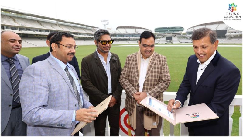 सीएम भजनलाल ने ट्वीट कर कहा कि आज यूनाइटेड किंगडम प्रवास के दौरान राजधानी लंदन स्थित विश्व के प्रतिष्ठित क्रिकेट मैदान, लॉर्ड्स क्रिकेट ग्राउंड का व्यापक अवलोकन किया। इस विशेष अवसर पर 'Rising Rajasthan' ग्लोबल इंवेस्टमेंट समिट 2024 के निमित्त राजस्थान रॉयल्स क्रिकेट टीम की रॉयल मल्टीस्पोर्ट प्राइवेट लिमिटेड के साथ लॉर्ड्स क्रिकेट ग्राउंड के बीच MOU पर हस्ताक्षर किए गए। इस MOU के अंतर्गत जयपुर को प्रमुख खेल केंद्र के रूप में विकसित किया जाएगा।