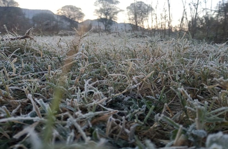 सीकर के खेतों में फसलों पर जमीं बर्फ।