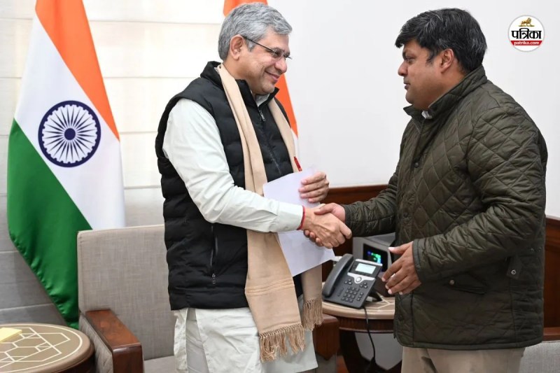 रेल मंत्री से मुलाकात करते सांसद दुष्यंत सिंह। फोटो: पत्रिका